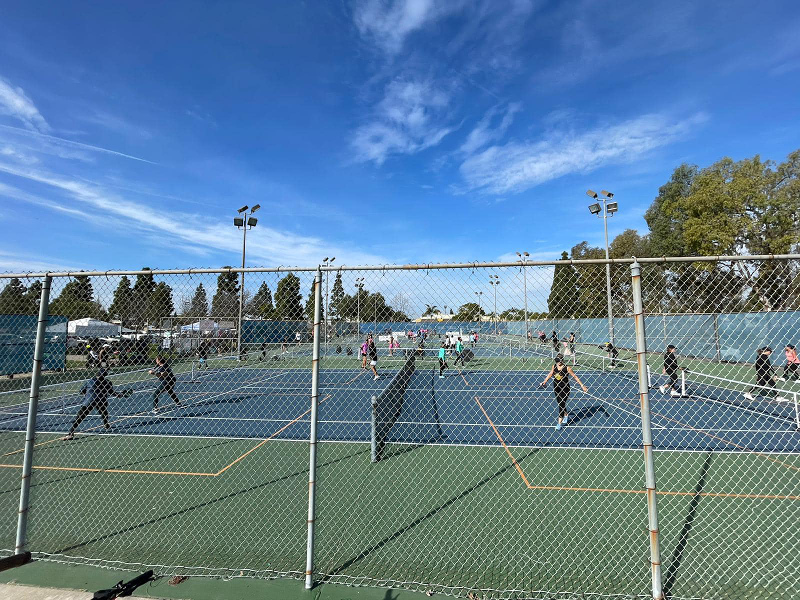 11 tennis courts and 4 pickleball courts in Fountain Valley Tennis & Pickleball Center. Reservation system. Best outdoor pickleball courts in FV & HB area, well organized, they charge $12/hr. Additional 8 court lines for pickleball on tennis courts. Can get busy from pickleball lesson groups. Some of the courts are just pickle ball courts but wish they would dedicate more courts to just pickle ball. The parking is easy. If you drive a Tesla, park at the West of the RR facility, there’s an EV charging station priced so cheap per Kwh.