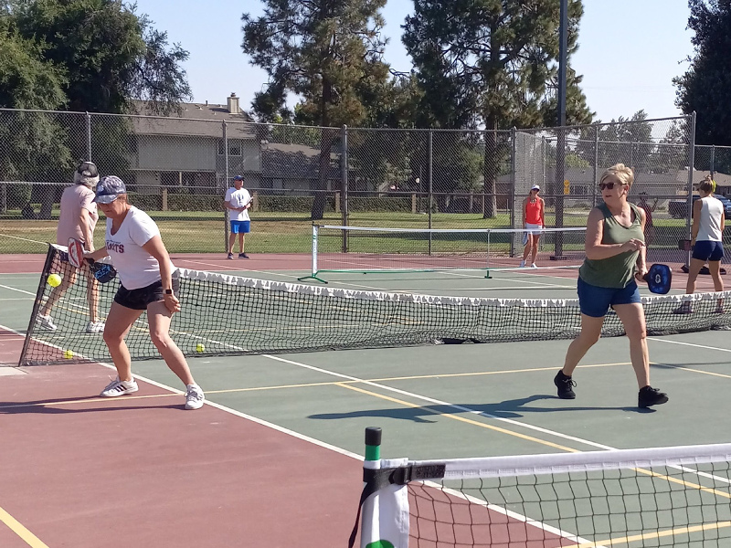 Pickleball every morning weather permitting from 8-11 on 8 temporary courts however the courts are well maintained. Friendly people with varying skill sets and ages.