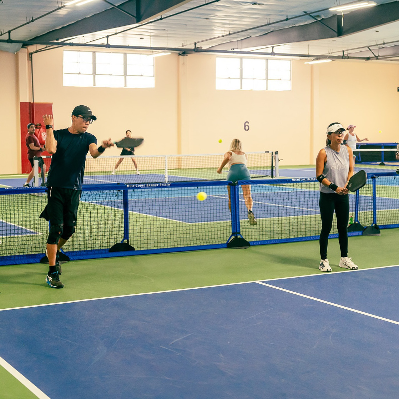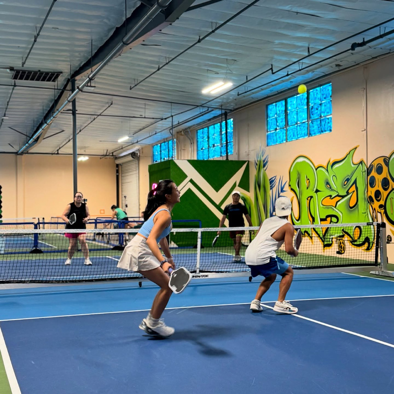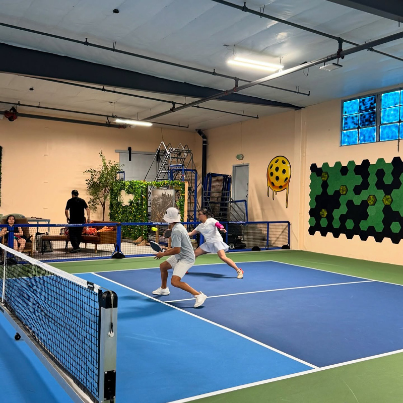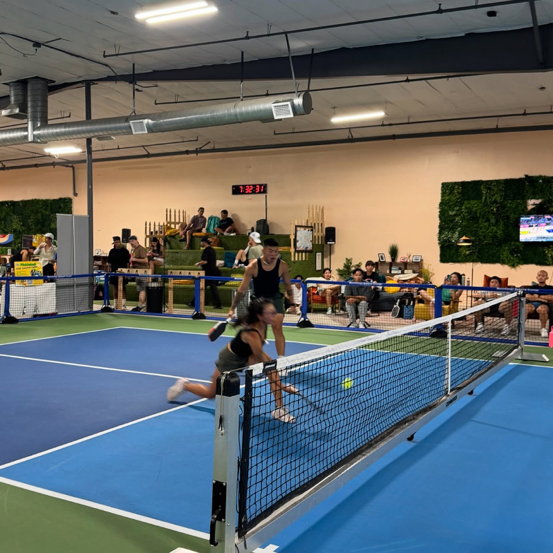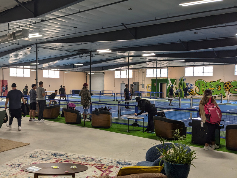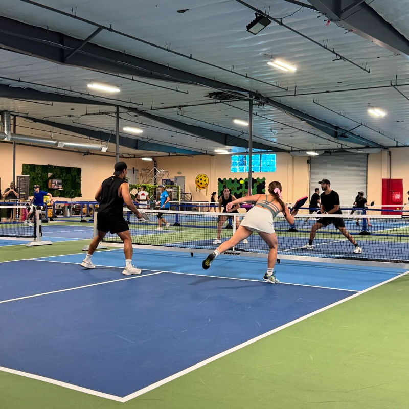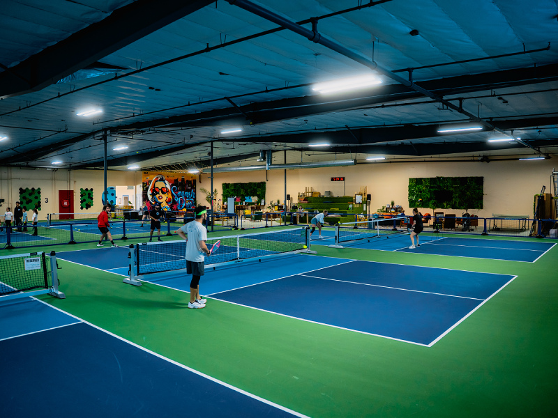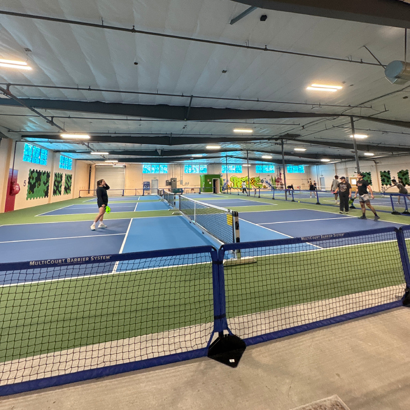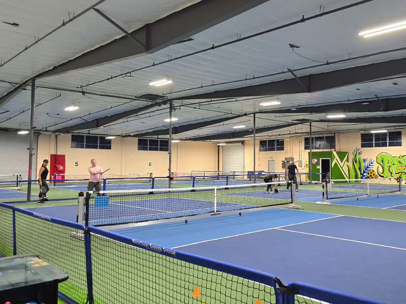 6 indoor acrylic hard courts, temperature controlled. Retail & pro shop, lockers, free wifi, certified instructors, comfortable seating & lounge areas, coffee/snack bar. Drop-In player option, you simply pay a one-time fee for each event or class you join. $15 per person per Open Play session, 7 day advance booking. Court rentals $50 per hour (maximum of 6 players). 10-Session open play punch card $135: Ideal for those who enjoy Open Play, this punch card offers a total value of $150 and provides access to multiple open play sessions at a discounted rate. $13.50 per session/buy ten sessions, get the eleventh free! VIP (Very Intense Pickler) pass: $175 per month. Passionate pickler pass: $100 per month.
